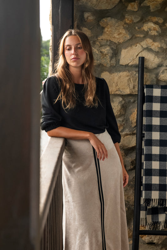 FALDA OPORTO BEIGE CINTA NEGRA.