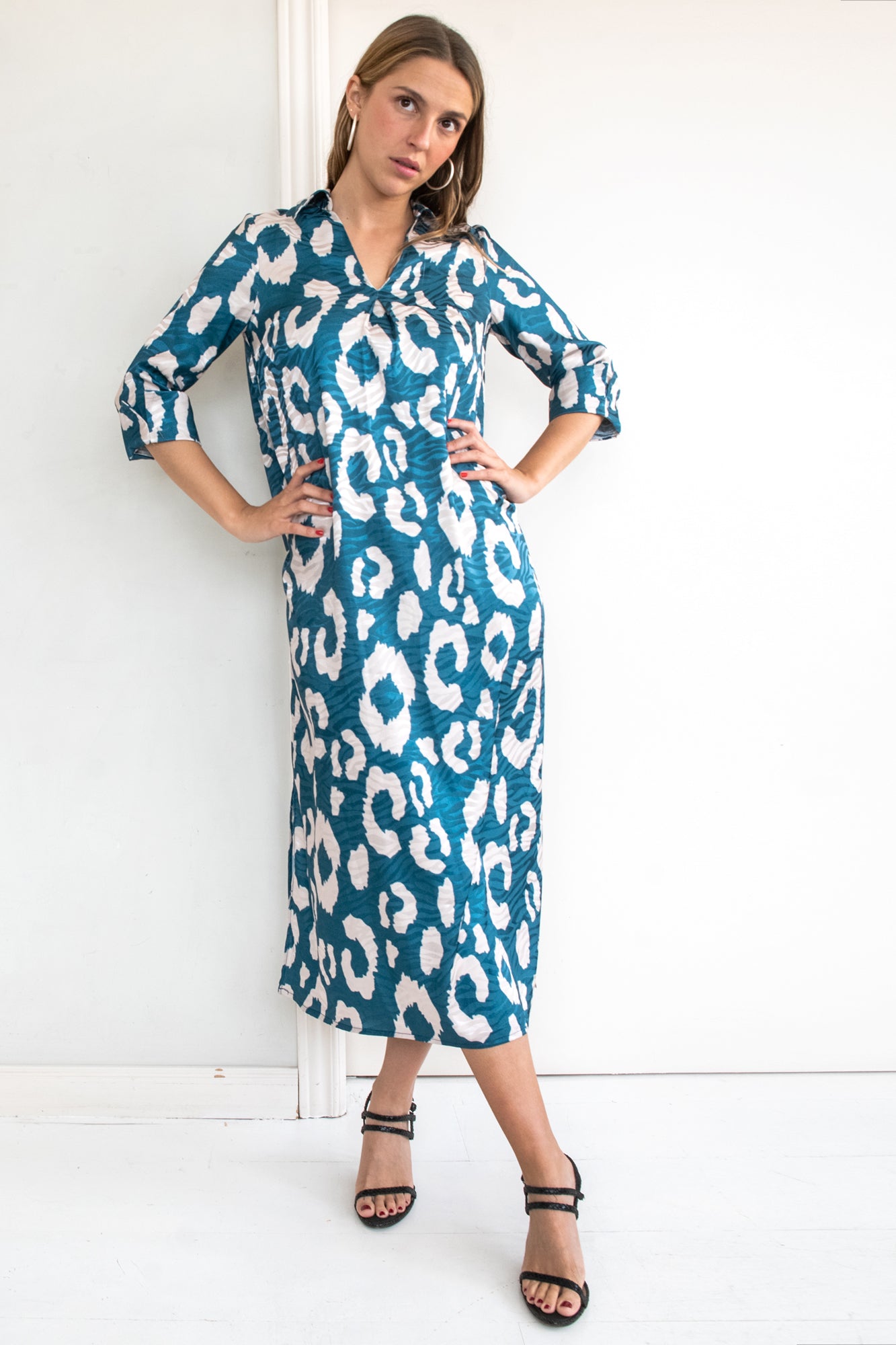 -Vestido midi, con pliegue delantero y canesú en la espalda.