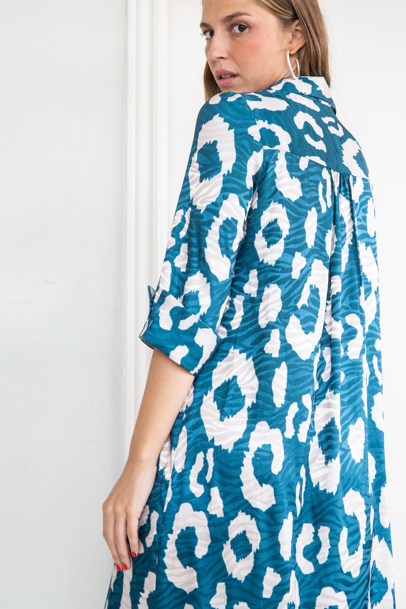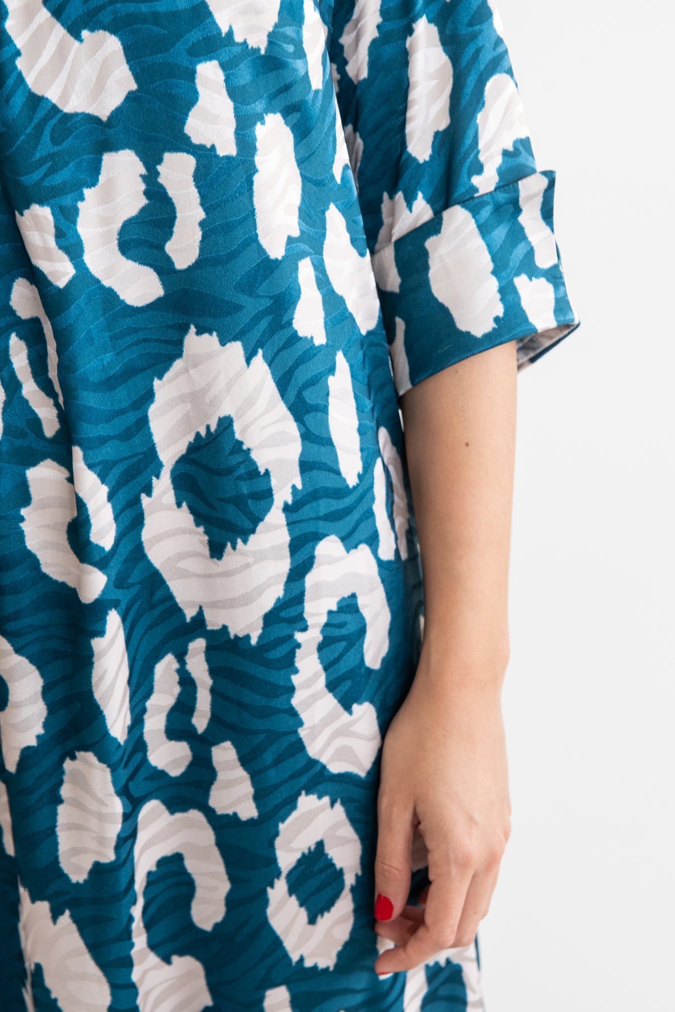 -Tejido: Fluido estampado verde azulado