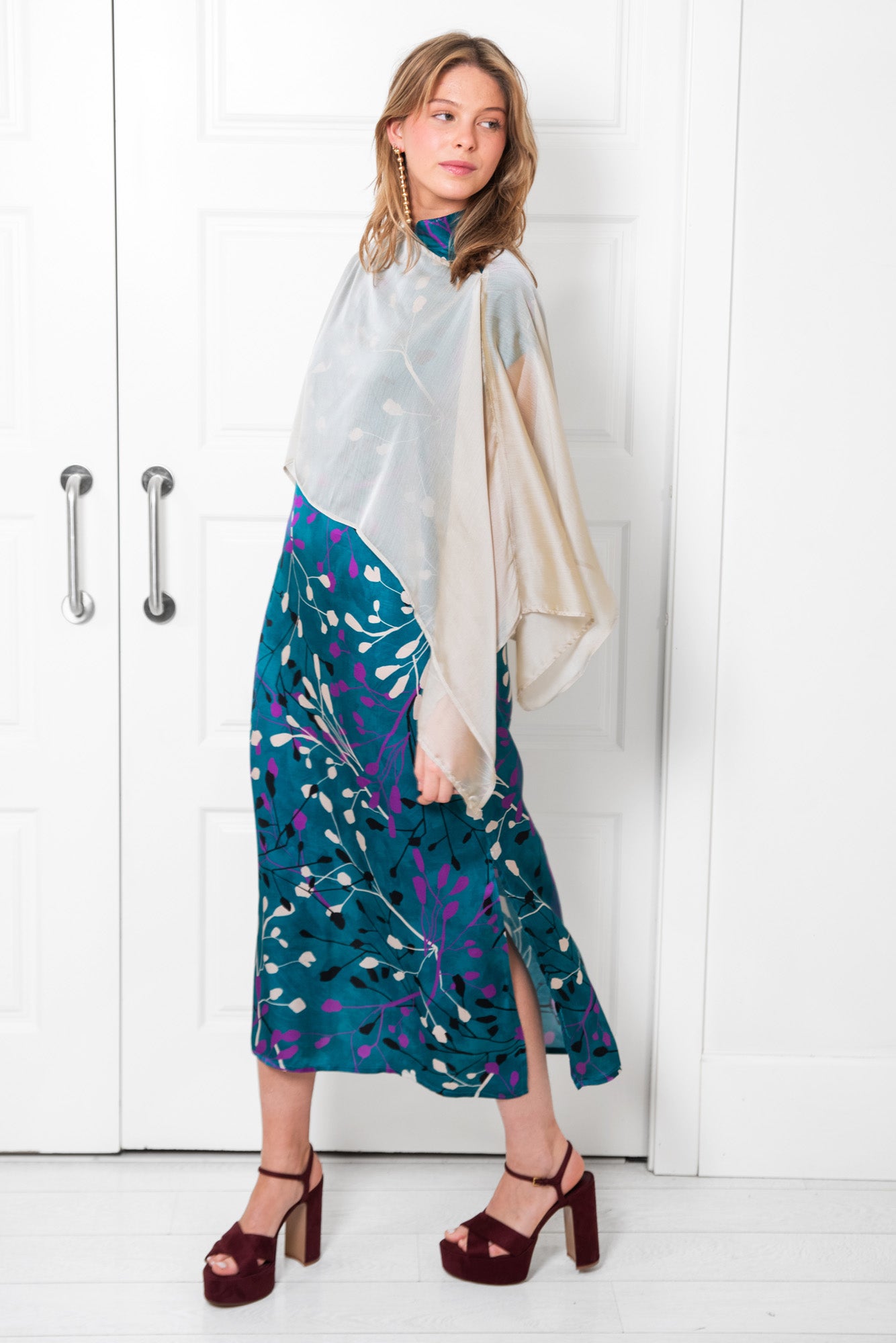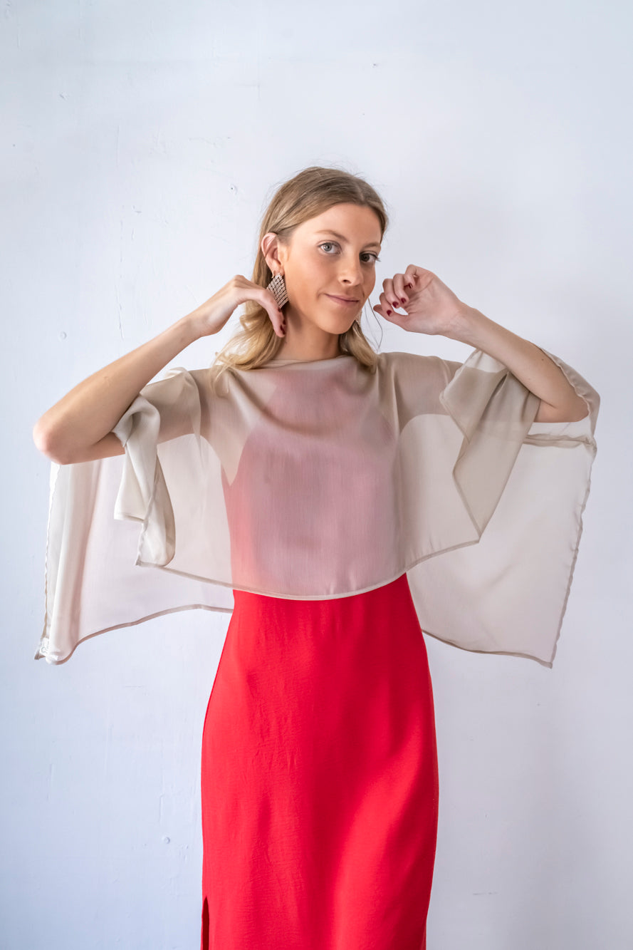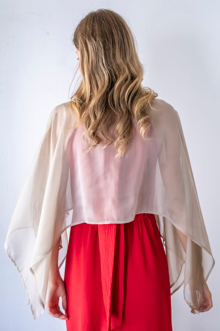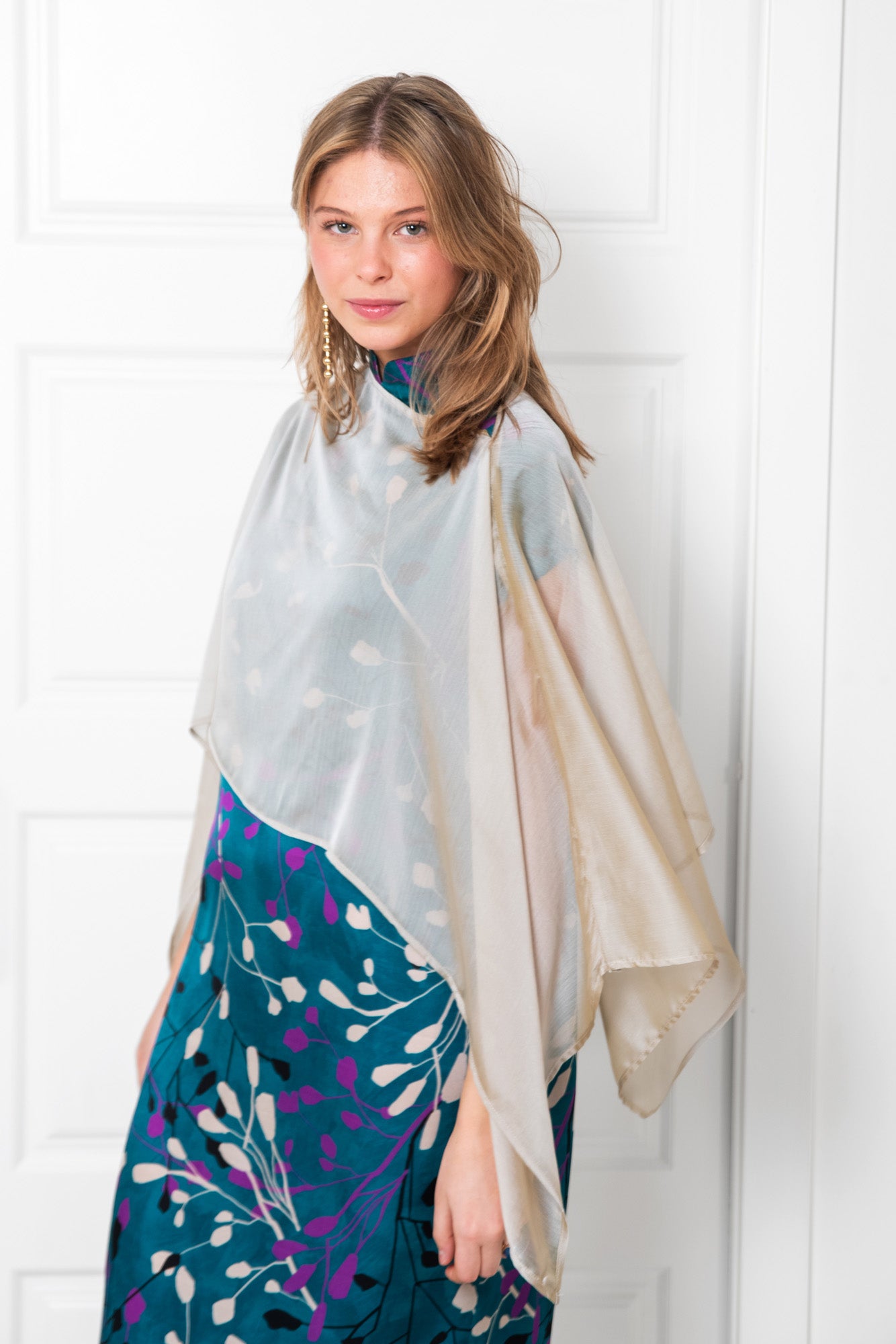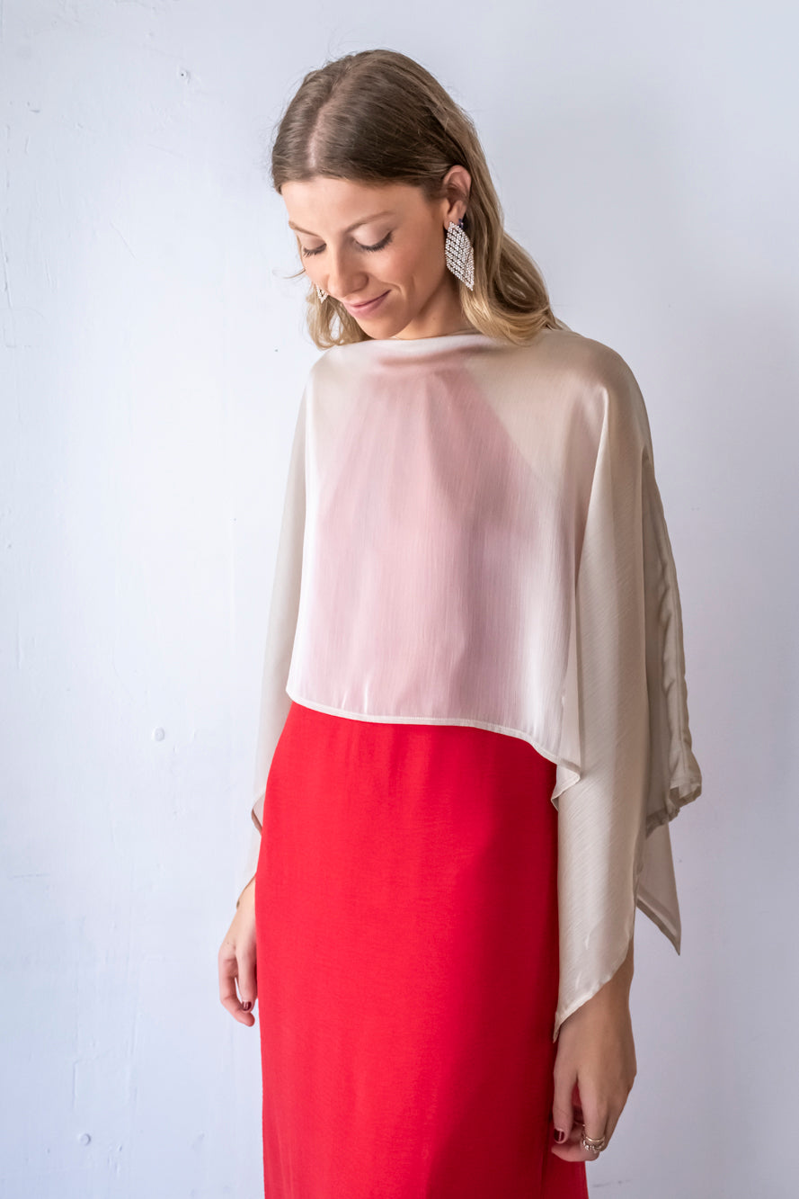 Xale alongado com uma única abertura para a cabeça e possibilidade de usá-lo em várias posições. É o complemento perfeito para o hóspede.
